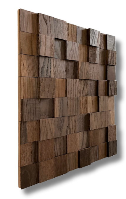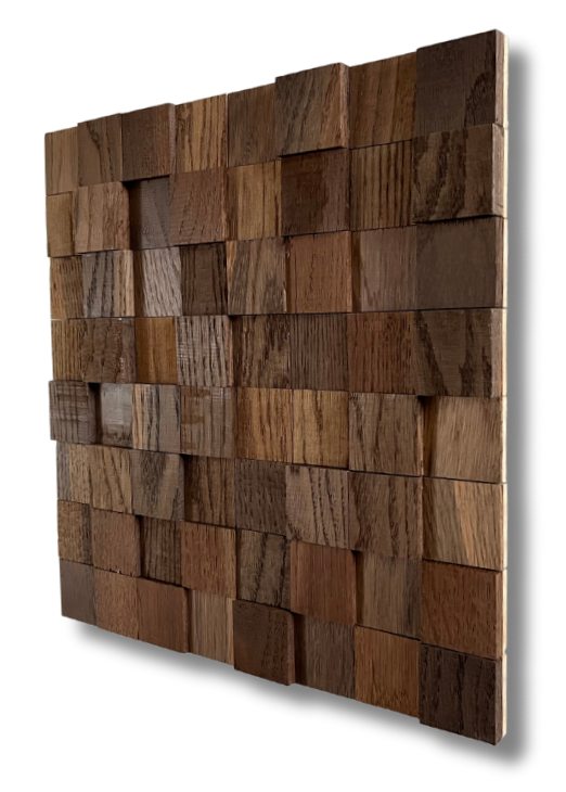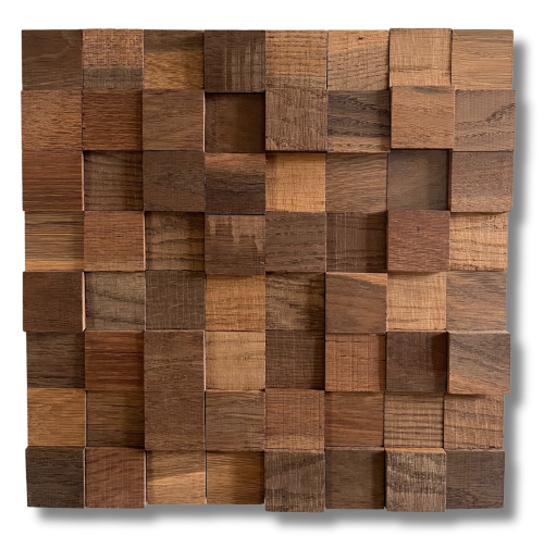 THERMO hladké čtverečky o rozměru 4,4x 4,4 cm a různých tlouštěk jsou nalepeny v 8 řadách a v 8 sloupcích na 5 mm MDF desku. V celku tvoří mozaiku se 3D efektem. Výrobek není povrchově ošetřen.